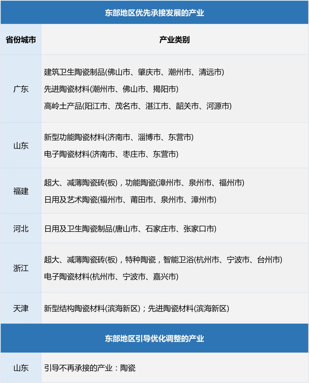 山东省将不再承接陶瓷产业;