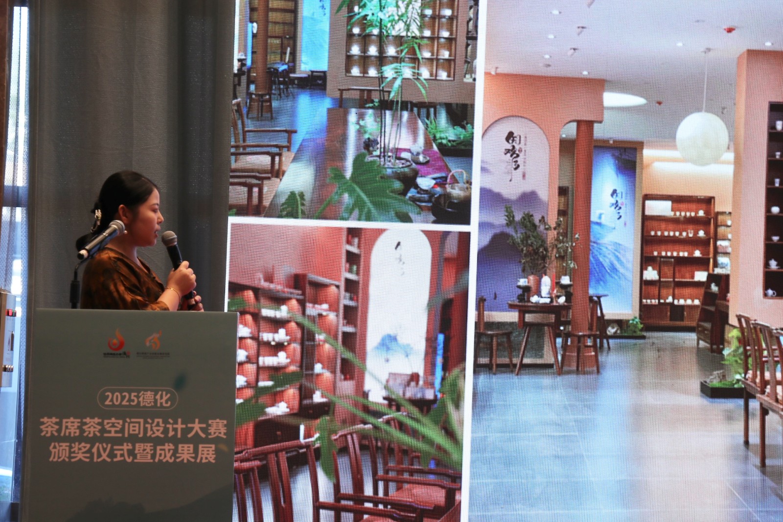 10月17日下午,2025德化茶席茶空间设计大赛颁奖仪式暨成果展在德化中国茶具城隆重举行,一场属于茶瓷融合创新设计盛会正式开启。德化县人民政府副县长林亮国,三班镇党委副书记、镇长陈为富,德化县陶瓷办常务副主任曾宪升,中国茶具城董事长郑永生,国家陶瓷行业工业设计研究院副院长唐孝康,县科技局、工信商务局、农业农村局、文旅局、市场监管局、总工会、团县委、工商联、城联社、融媒体中心、泉州工艺美院、德化职校等单位领导,以及陶瓷艺术大师、工艺美术大师、陶瓷、茶文化领域企业代表、电商企业代表、设计师,“茶席茶空间”获奖选手们齐聚一堂,共同见证一场茶瓷融合的美学盛宴 。