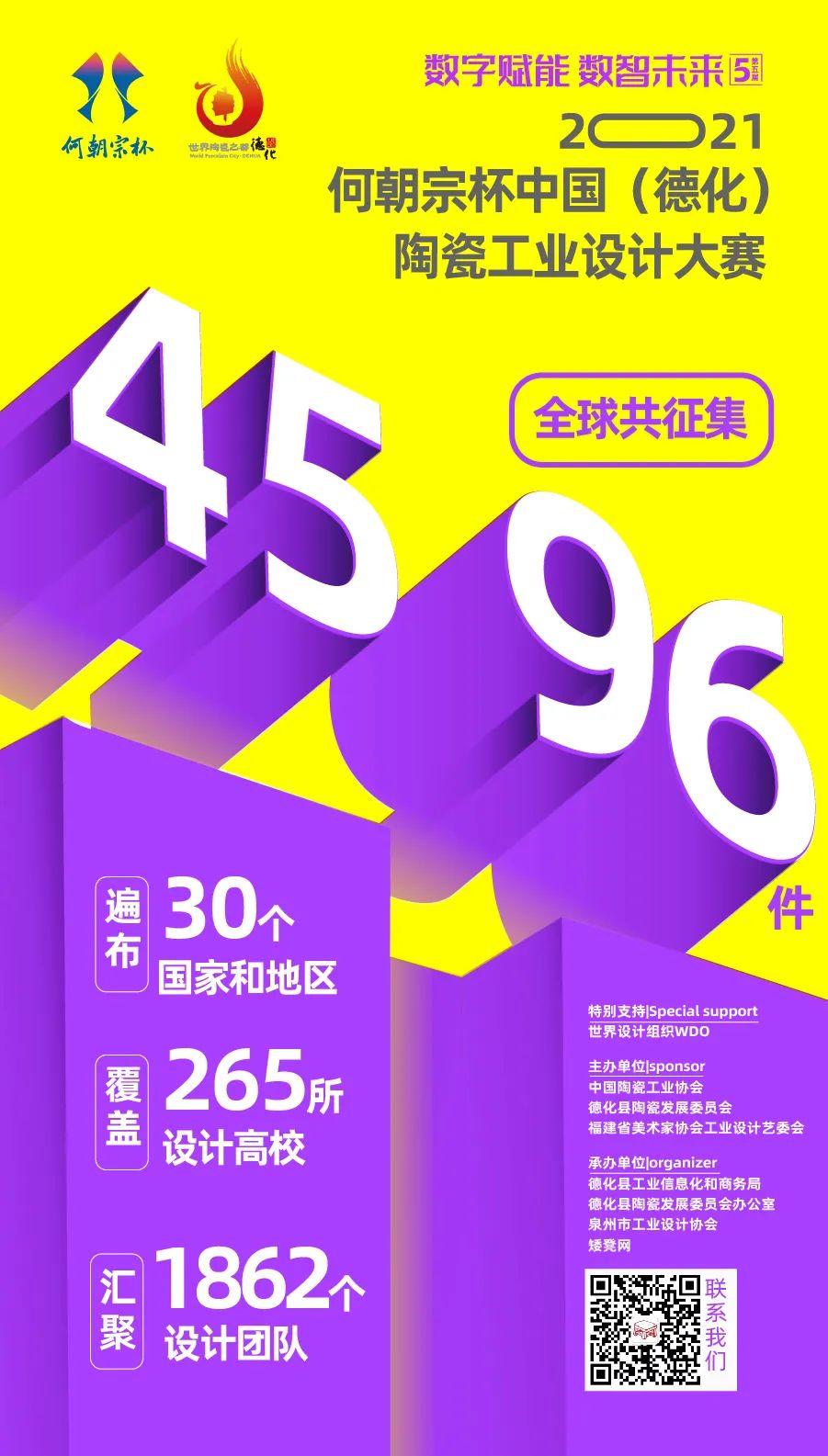 据组委会统计,本届大赛共收到来自中国、瑞士、俄罗斯、澳大利亚等全球设计团队、企业和个人投递的4596件有效投稿作品,覆盖海峡两岸265所设计高校,其中境外(含港澳台)投稿件415,占比9.02%;社会投报作品1478件,占比32.16%。